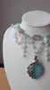 - Handcrafted with glass pearls, teardrop beads, gemstone accents & a blue stone pendant
