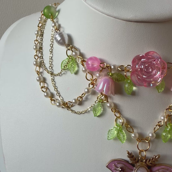 The Blossomwing Necklace is a fairycore-inspired statement piece that blends the delicacy of blooming petals with the strength of stainless steel.