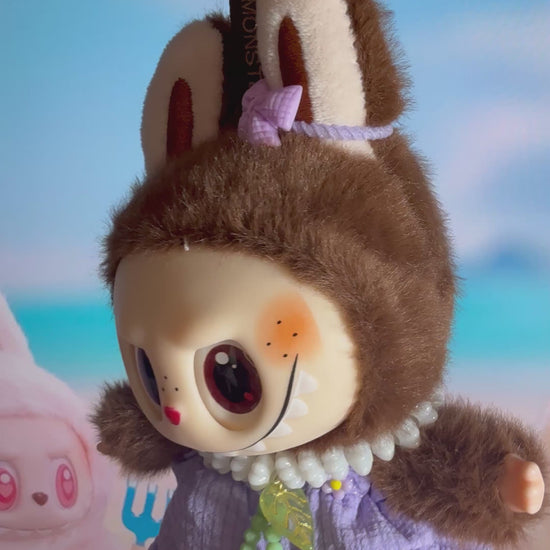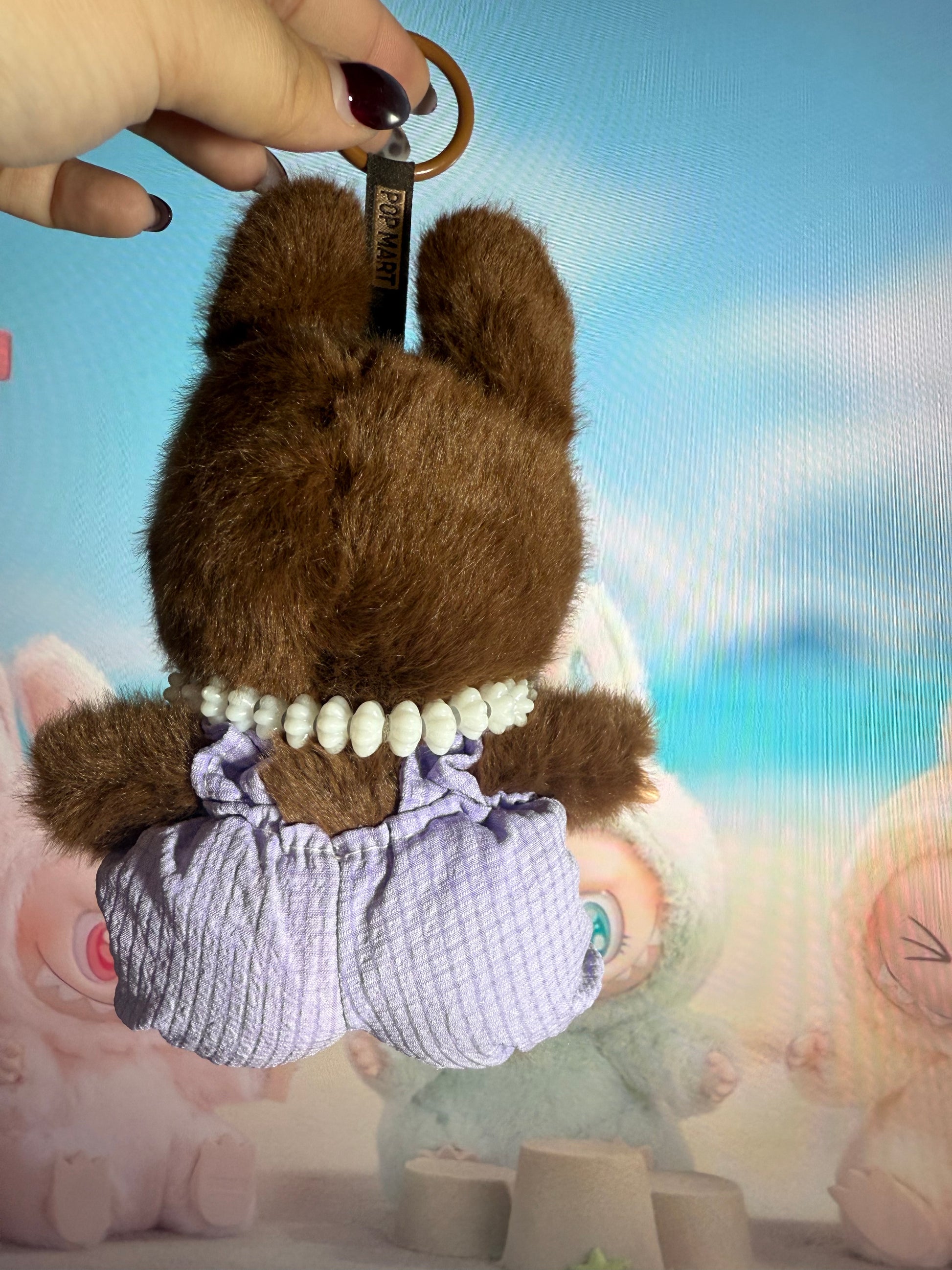 Meet the Sweet Berry Lafufu, a lovable plush companion dressed in soft lilac overalls, complete with a pearl necklace, cherry charm, and tiny bow on the ear. 🍇✨