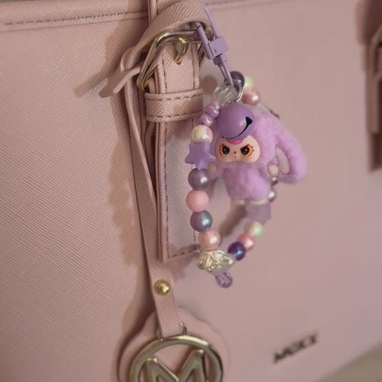 Step into pastel dreams with this handmade beaded keychain featuring a soft lavender bunny plush charm. Surrounded by delicate beads in shades of purple, pink, and pearl white, along with star and bow details, it’s the perfect accessory for adding a touch of kawaii and fairycore style to your bag, keys, or phone case. Lightweight, unique, and full of charm – an ideal gift for pastel lovers and collectors.