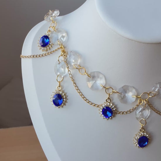 Bring a touch of royal grandeur to your style with the Antoinetta Necklace. ✨ This opulent piece features sparkling clear crystal beads and cascading gold chains, adorned with deep sapphire-blue gemstones framed in delicate halos of rhinestones. Inspired by the elegance of Marie Antoinette and the lavish courts of the past, it’s perfect for anyone who loves a bold, regal statement.