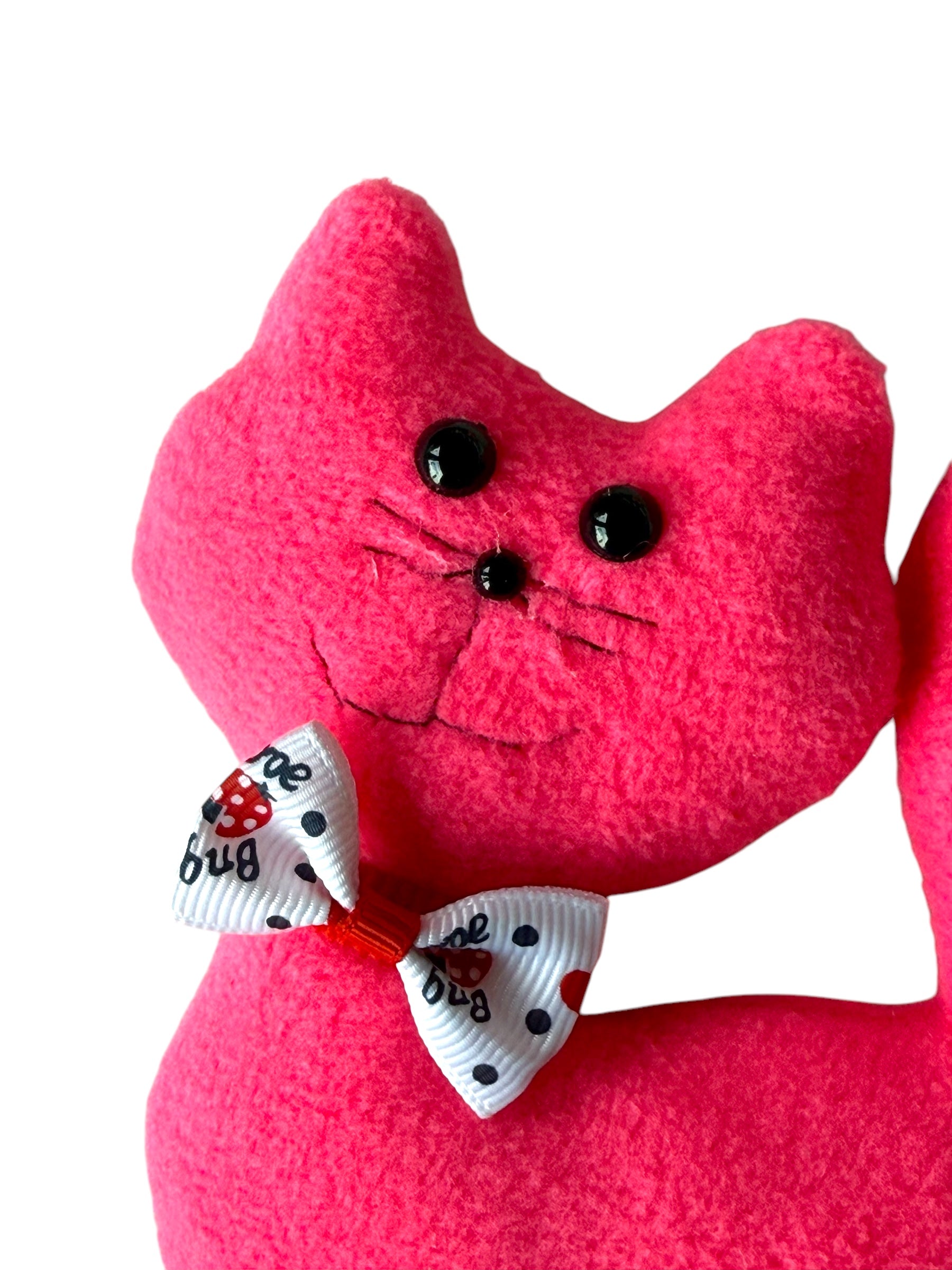 Meet the BowMeow Cats — a playful family of handmade fleece kittens, each with its own cheerful bow tie and cuddly charm. Made from hypoallergenic fleece and filled with soft thermofill stuffing, these colorful cats are perfect for hugs, comfort, and imaginative play. Suitable for children aged 3 and up, they are washable (gentle hand wash or machine at 30°C) and lovingly handcrafted to be both adorable and safe.