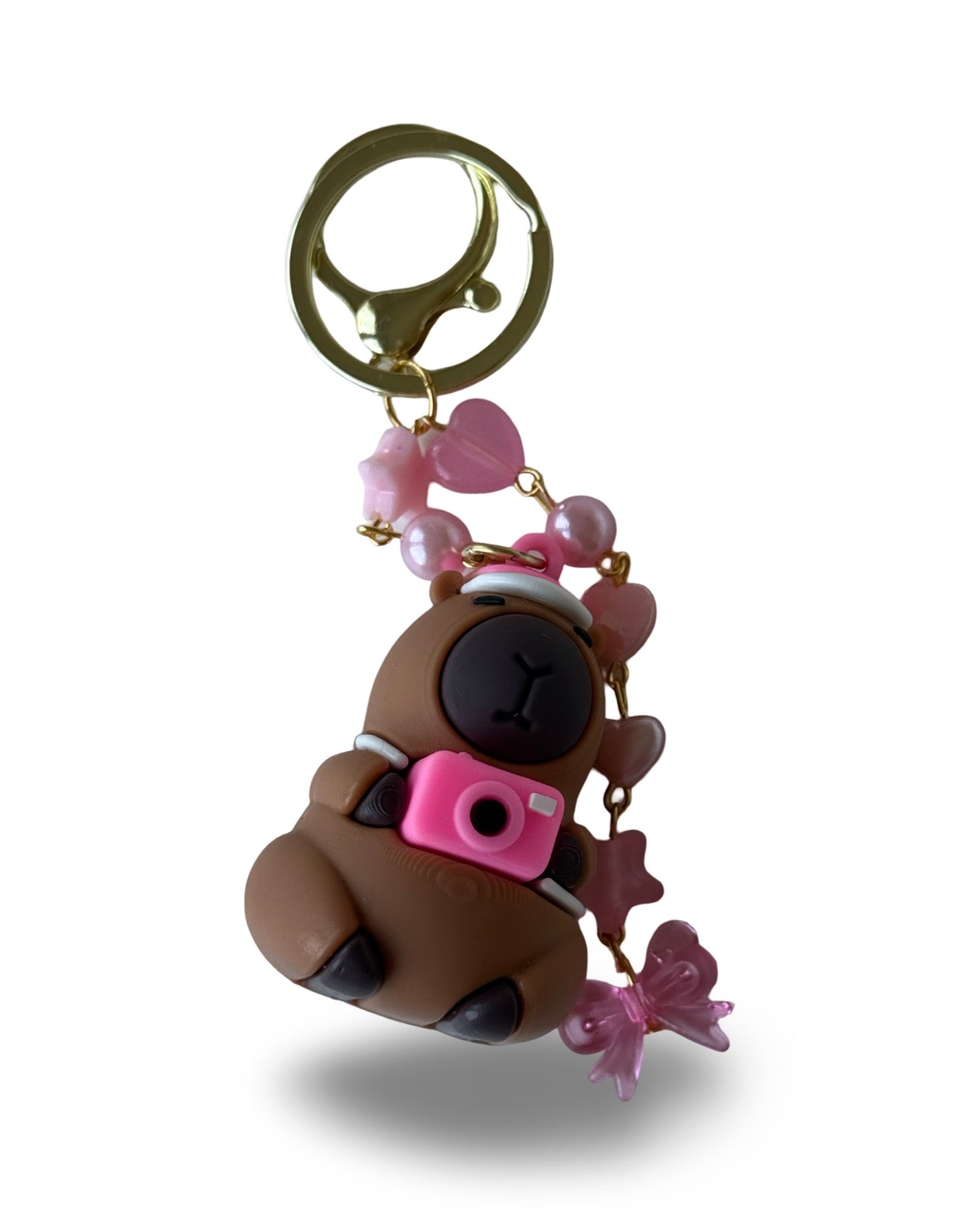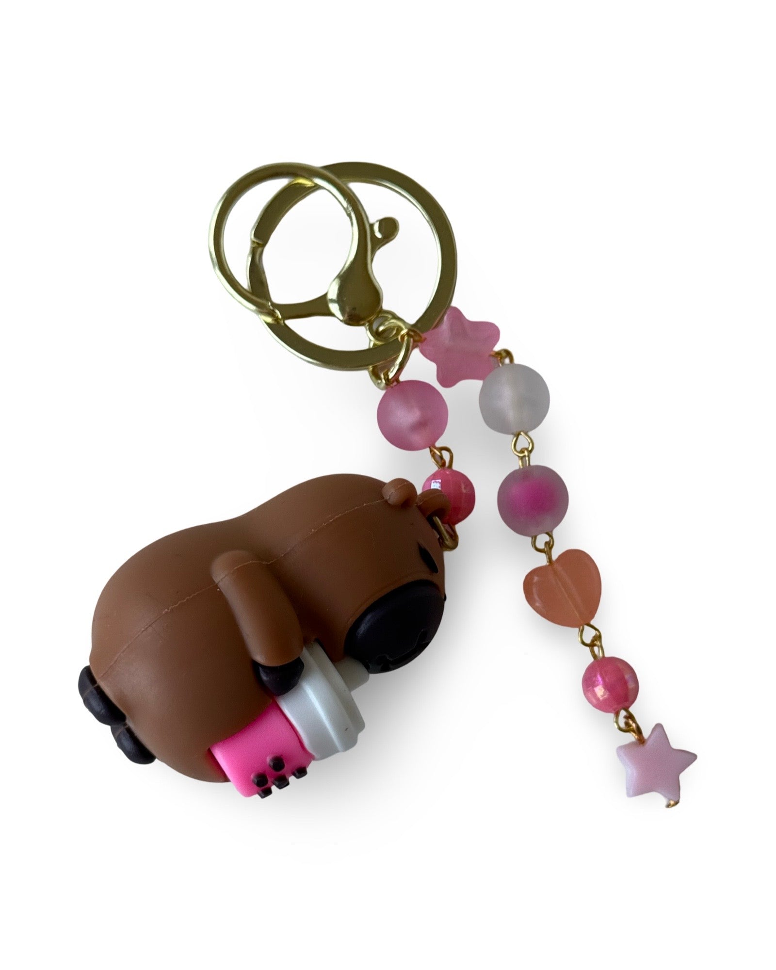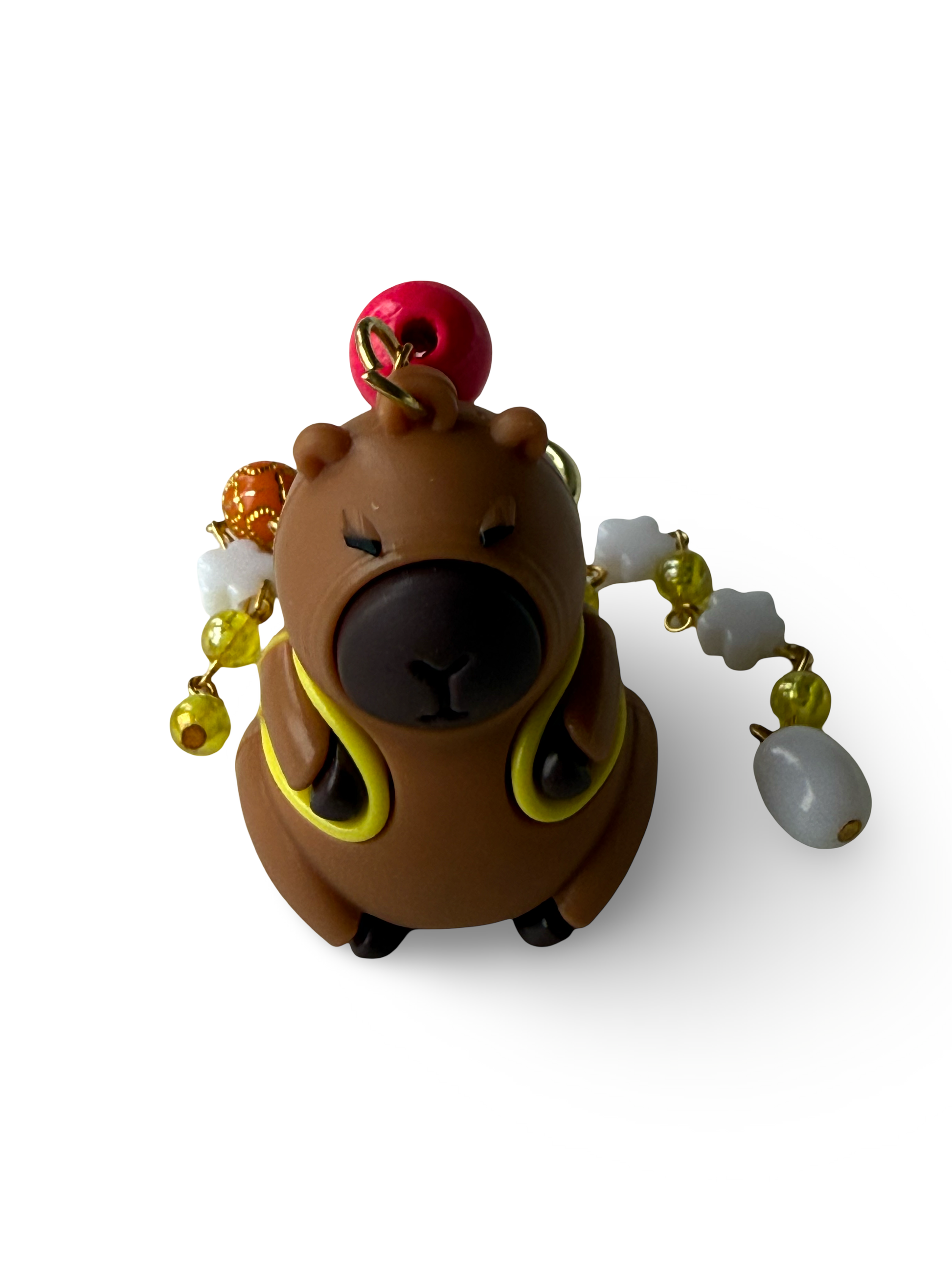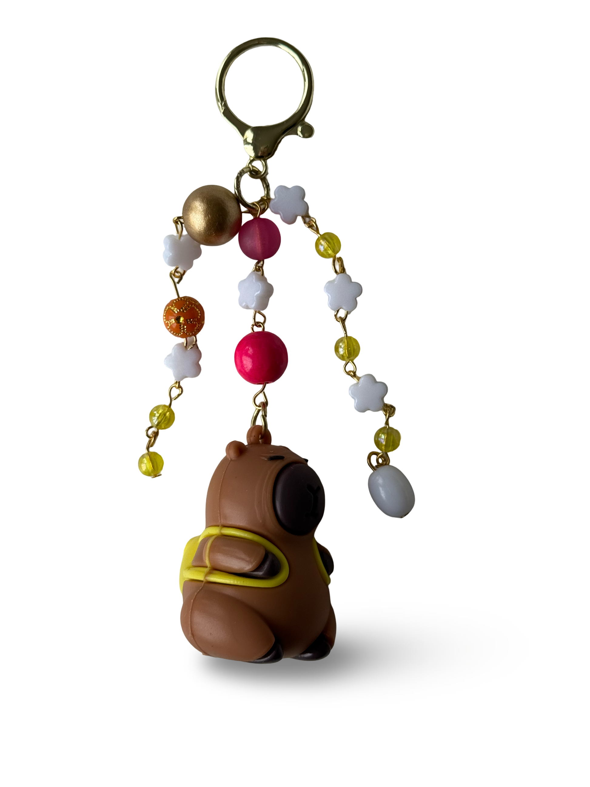 Add a burst of cuteness and color to your keys or bag with this handmade capybara charm keychain!
