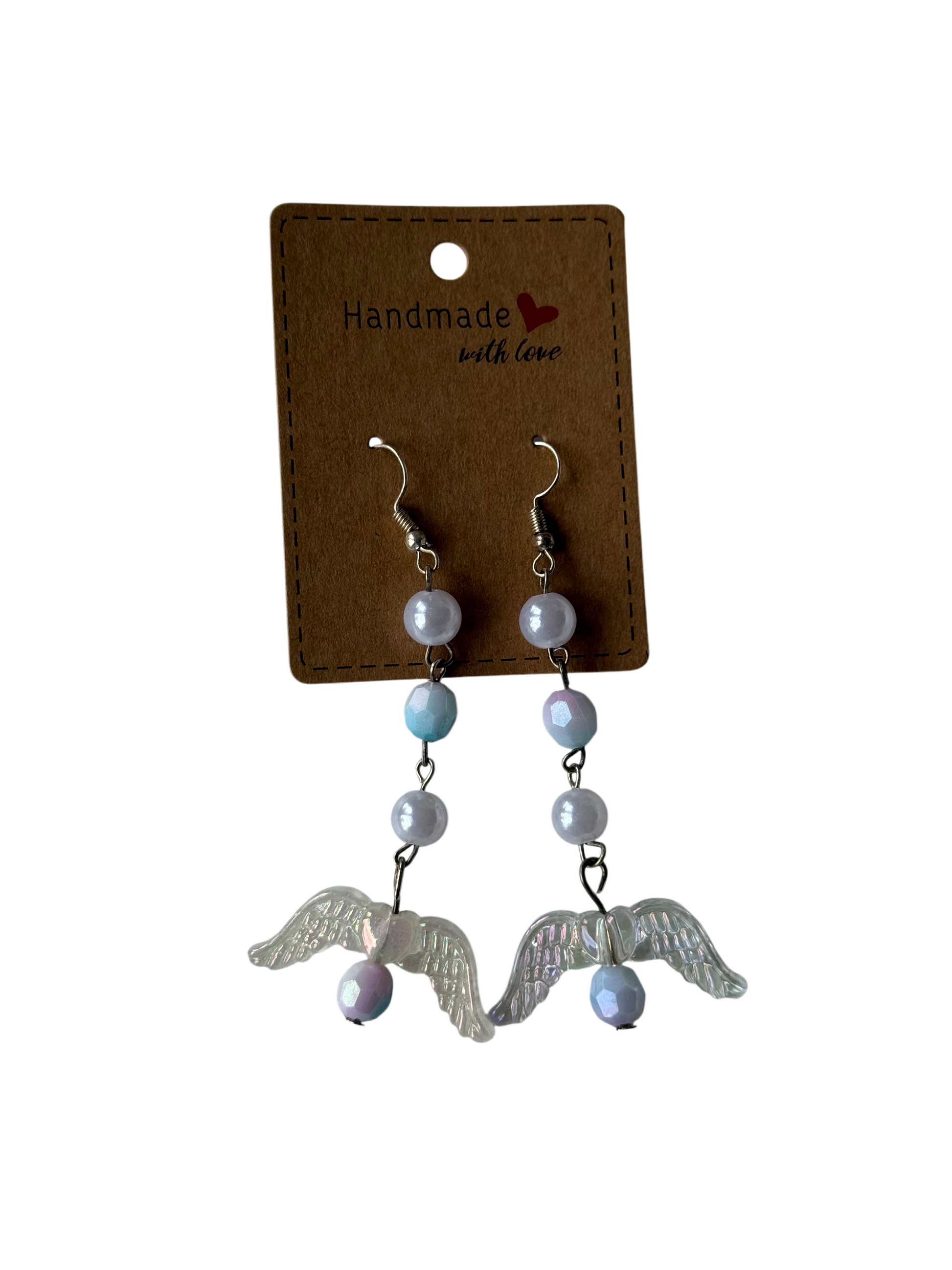 Drift into a dreamy sky with our Celestial Wings earrings — a soft, ethereal design that captures the lightness of angelic flight. These handmade earrings feature glossy pearl-like beads, pastel-toned faceted accents, and iridescent wing charms that shimmer with every movement. Delicate yet full of character, they’re perfect for fairycore lovers, romantics, and anyone who wants a touch of celestial magic in their jewelry collection.