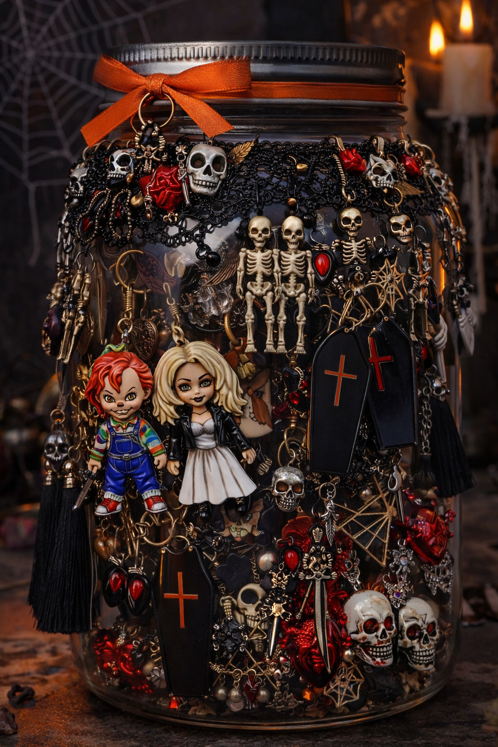 Dark, dramatic jars curated with bold charms, vintage touches, and mysterious elegance.