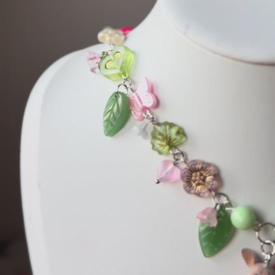 The necklace is made with chain links, closes securely at the back, and has an adjustable length for a perfect fit. Whether worn on a spring day or to add a whimsical touch to your everyday outfit, Fawnlily Meadow will make you feel like a woodland muse.