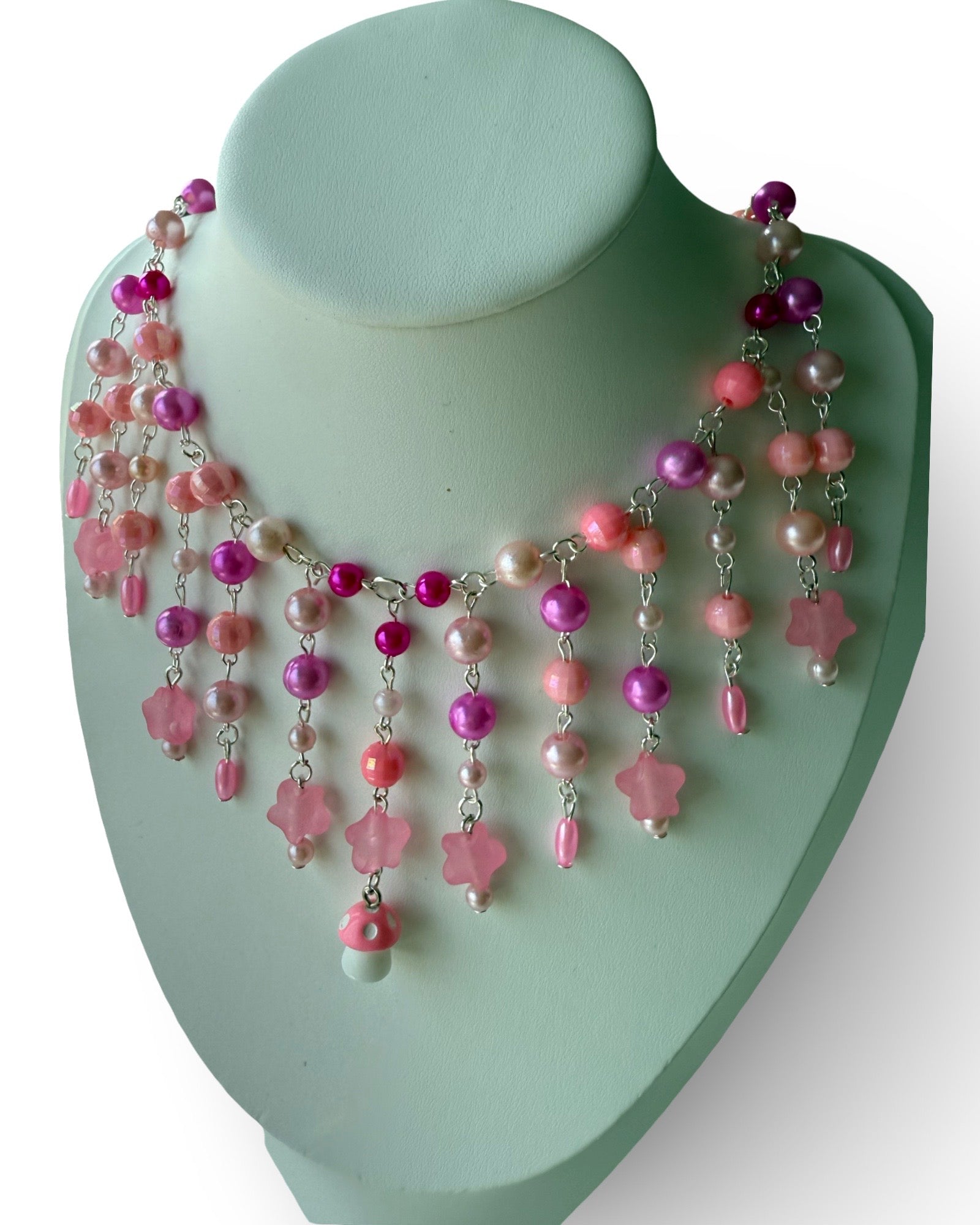 This enchanting necklace is handmade with shimmering silver chain links, crystal-clear heart beads, and delicate accents that catch the light with every move.
