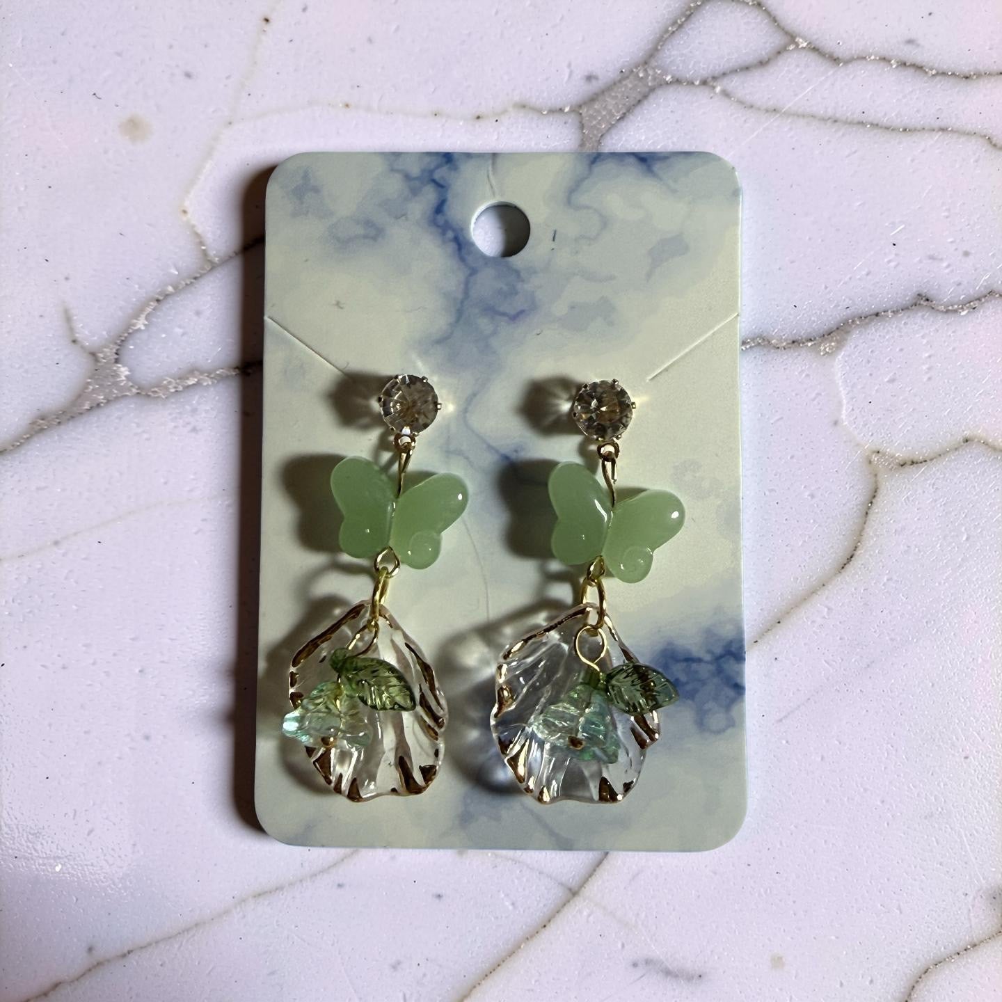 Soft, fresh, and inspired by blooming garden mornings, the Green Butterfly Garden Drop Earrings bring natural elegance with a touch of fairy charm.