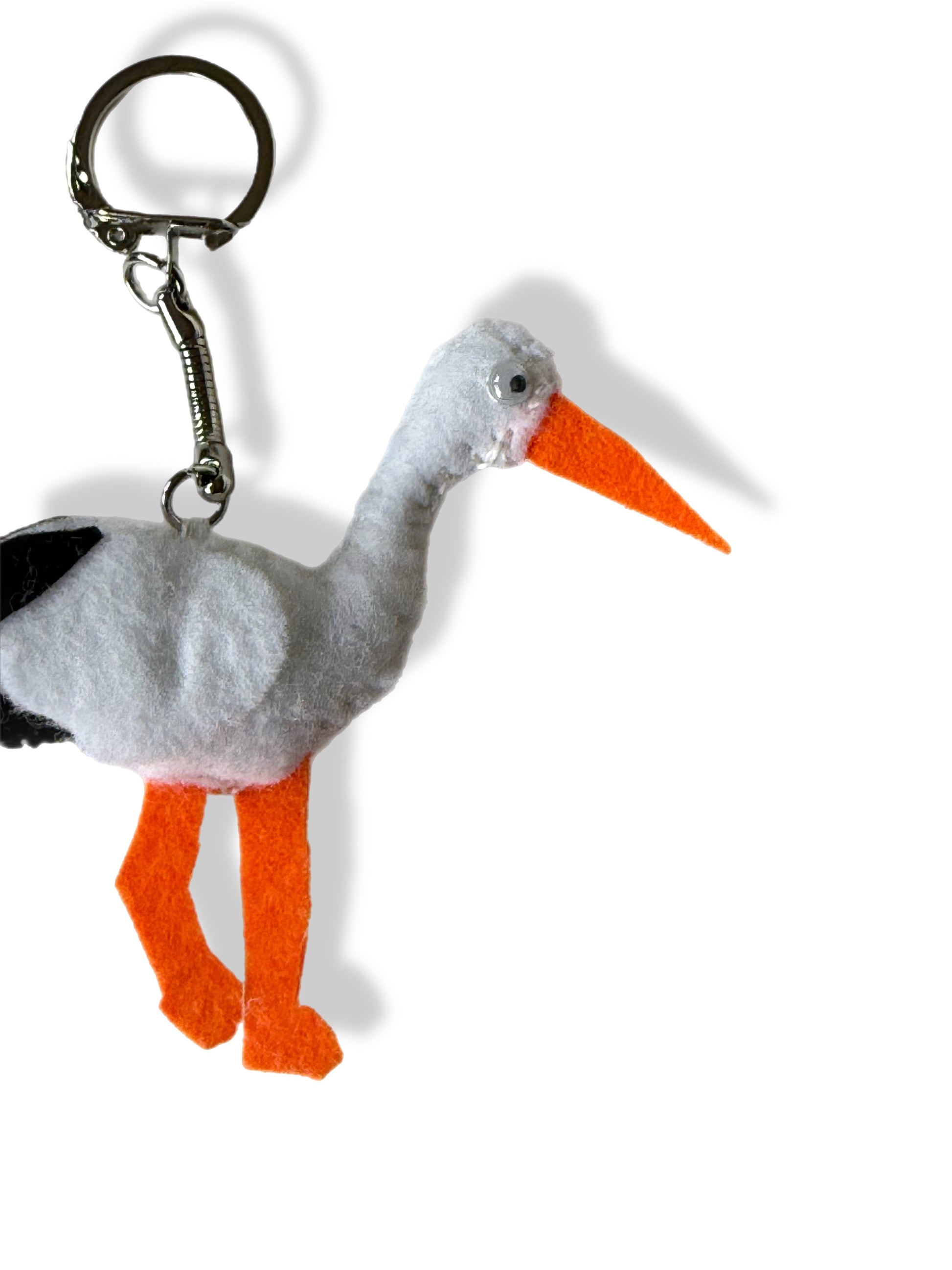 Handmade Felt Stork Keychain – Symbol of Good Luck & New Beginnings