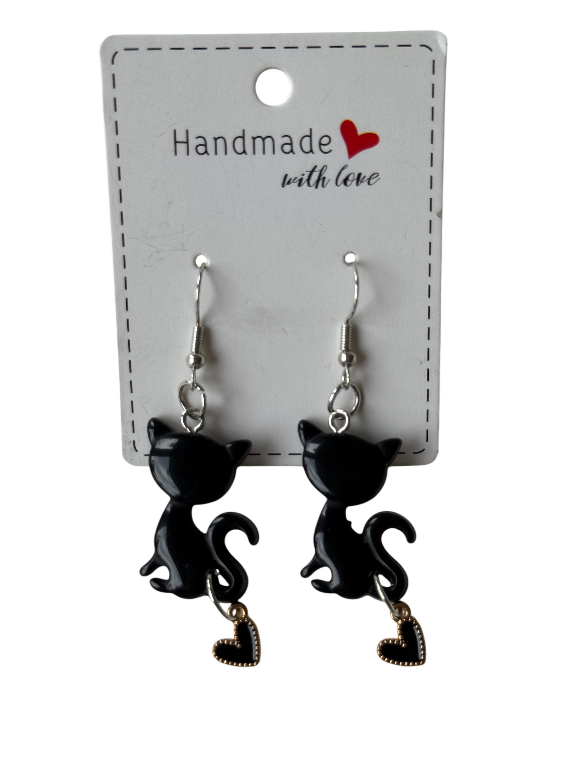 Materials: Glossy resin cat charms, enamel heart charms with gold-tone edge, silver-tone stainless steel hooks (nickel-free)