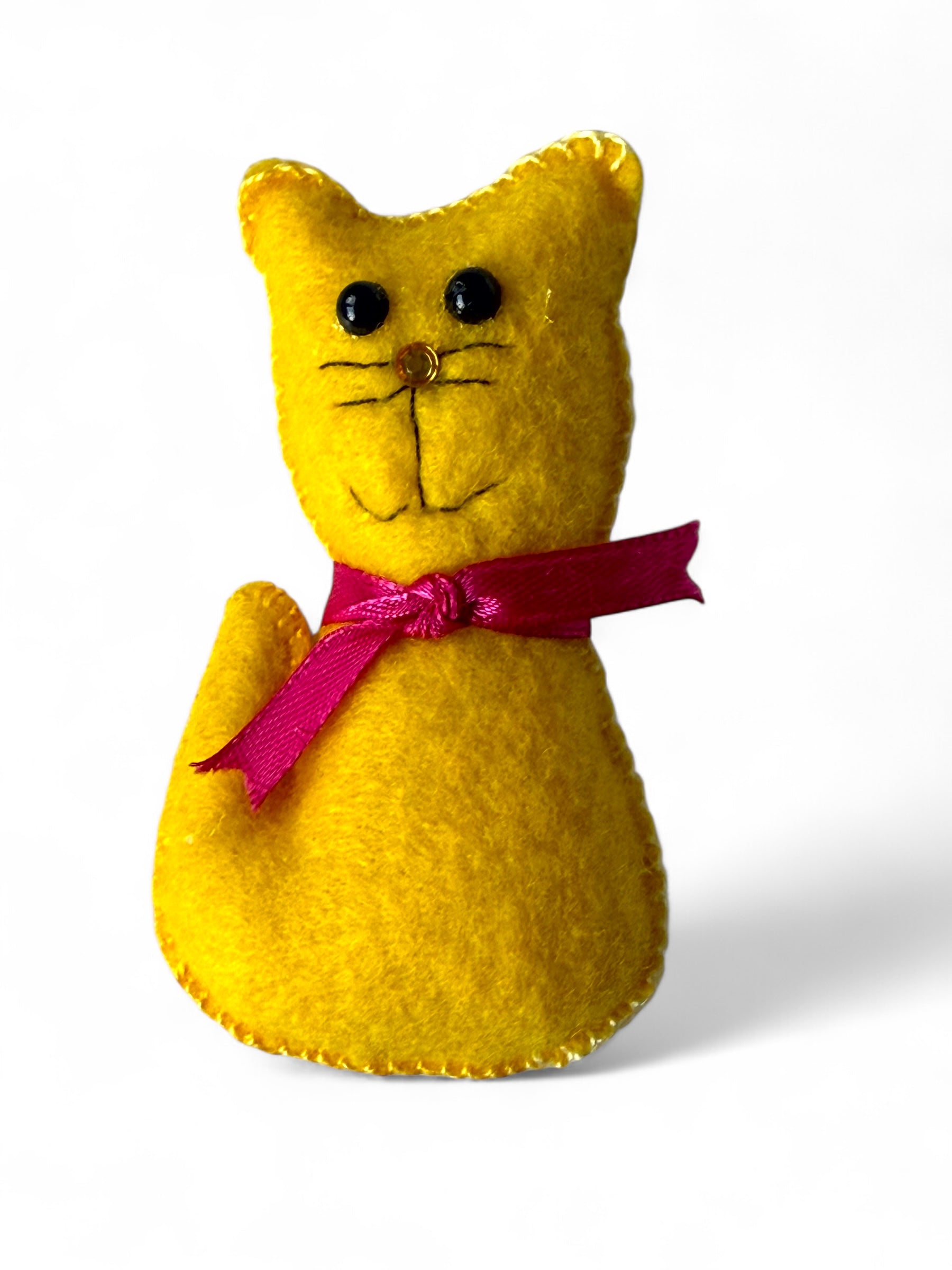 Meet MiniMew, the tiniest kitty with the biggest charm! This handcrafted miniature cat is made from soft, hypoallergenic felt and filled with lightweight thermofill stuffing. Featuring a stitched face, shiny bead nose, and a delicate ribbon bow, MiniMew makes a lovely gift, decor piece, or pocket-sized friend. Safe for children aged 3+, and easy to clean with a gentle hand wash or 30°C machine cycle.