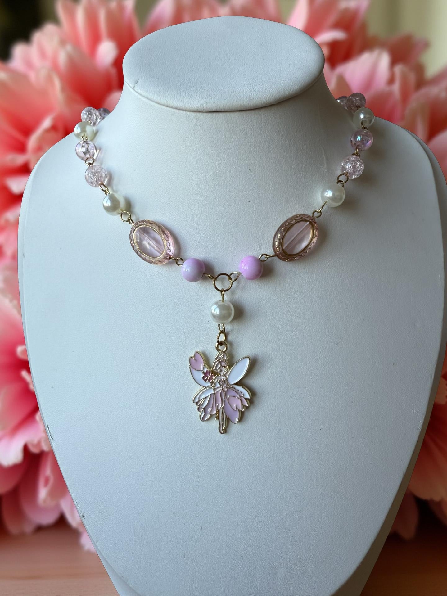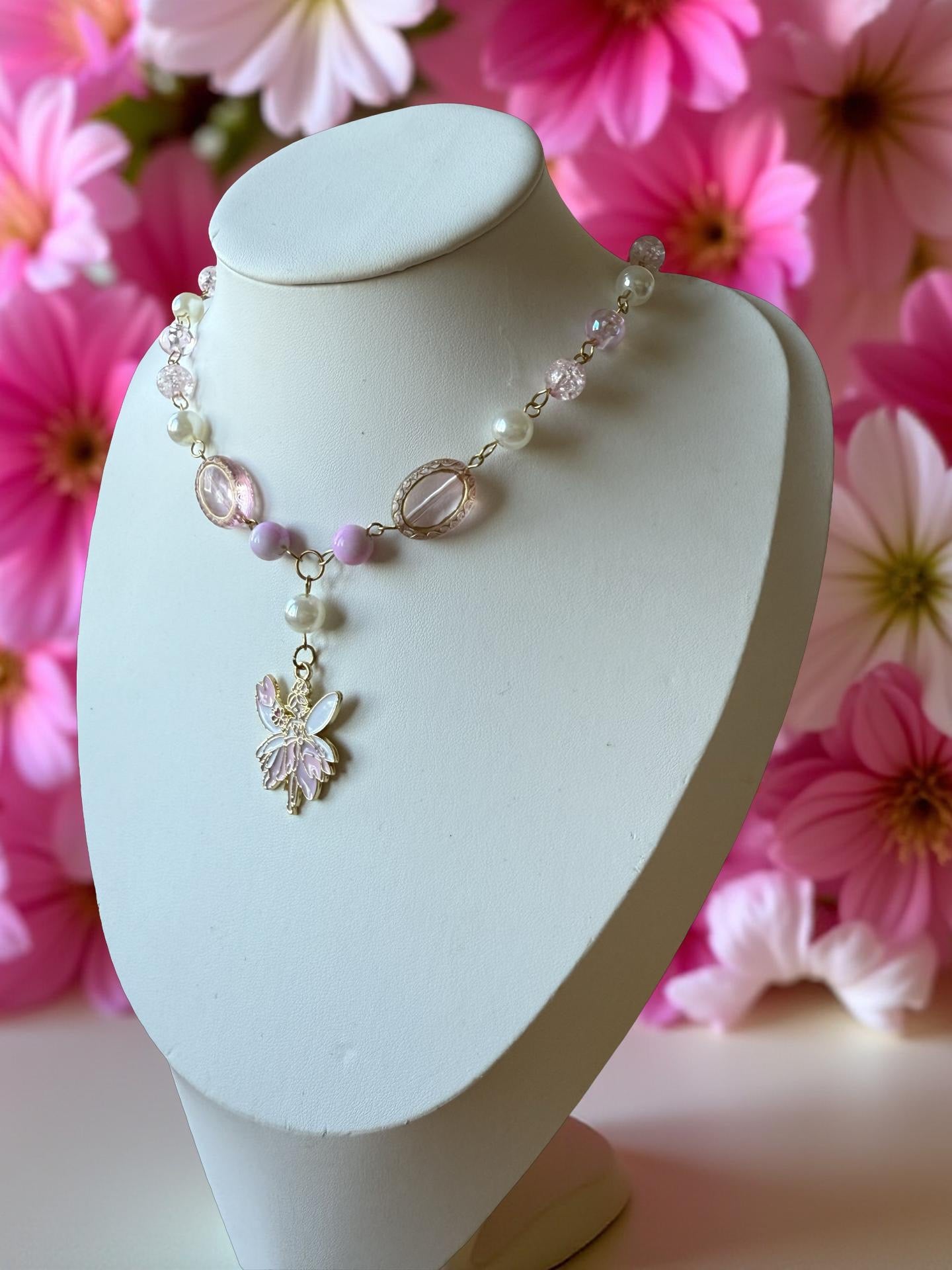 🧚 A charming fairy pendant with pink enamel wings – like a pixy caught in bloom