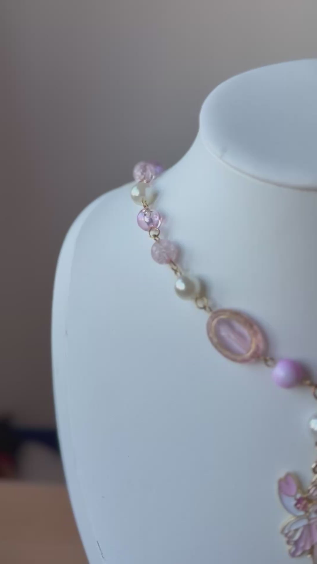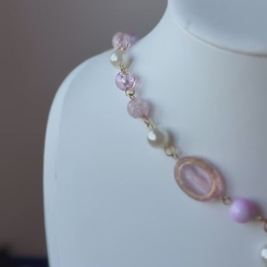 🌸 Pastel pink beads and crackled glass accents that shimmer in the light