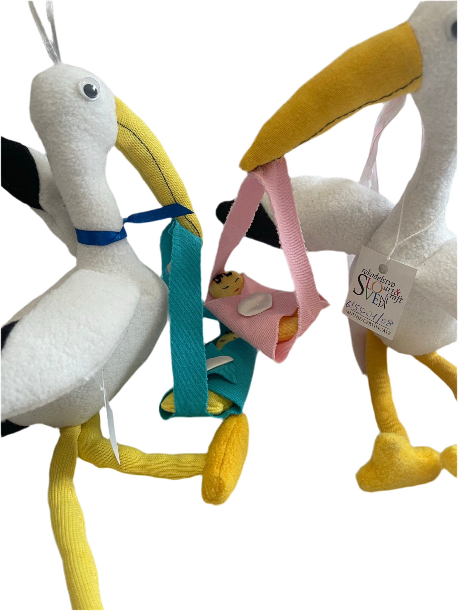 The stork was created at the request of an eager husband, who wanted to gift his wife a stork to hang on the rearview mirror of their car as a symbol to inspire thoughts of starting a family. About a year later, the husband returned, asking for a stork in a 30 cm size, this time carrying two babies. The stork brought them luck, and many others who followed confirmed joyful news after receiving their own stork.