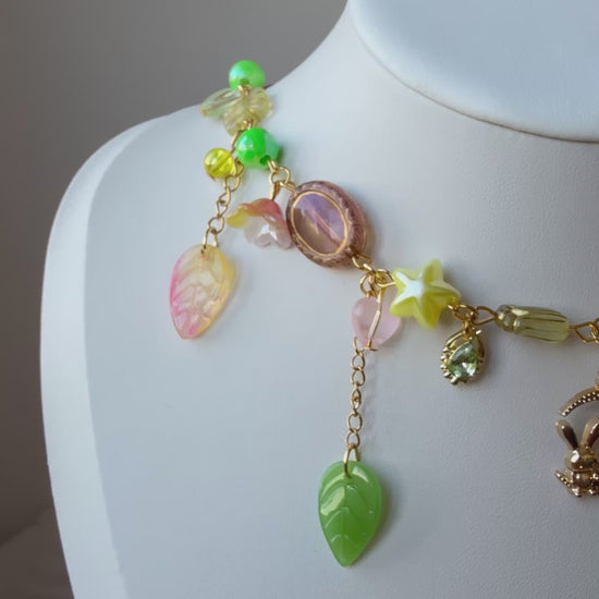 Bring a touch of woodland magic to your style with the Thalindra Meadowbloom Necklace. 🍃🌸 This enchanting piece features pastel-toned beads, delicate star and leaf charms, and a whimsical gold-tone pendant with two tiny rabbits resting under a crescent moon. Inspired by blooming meadows and forest fairytales, it’s perfect for anyone who loves a fresh, nature-kissed look.