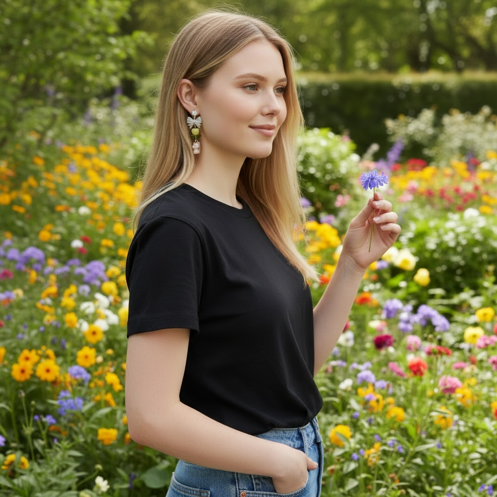 These whimsical earrings feature sparkling crystal studs, delicate bow accents, soft leaf-inspired beads, and the cutest little squirrel charms. Inspired by peaceful forest walks and cozy woodland scenes, the design brings a sweet cottagecore aesthetic to any outfit.